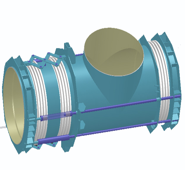 特点:复式膨胀节由一个中间管段连接两个波纹管组成,用于吸收组合位移与角位移;该模型用于横向位移较大的管网;压力可由拉杆来承受