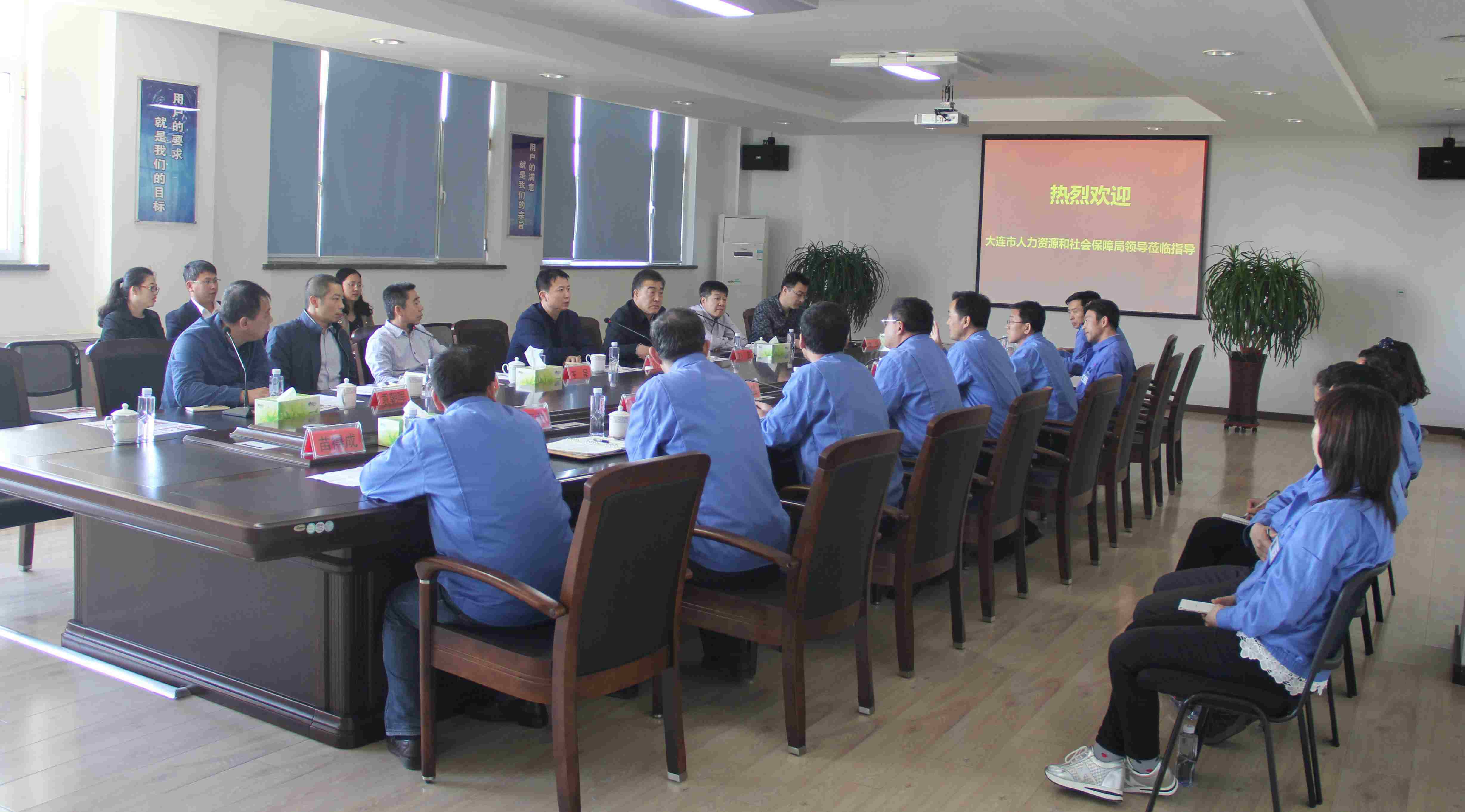 2016年4月28日大连市人力资源和社会保障局孙长久副局长带队一行14人到91探花国产综合在线精品走访调研,长兴岛劳人局…