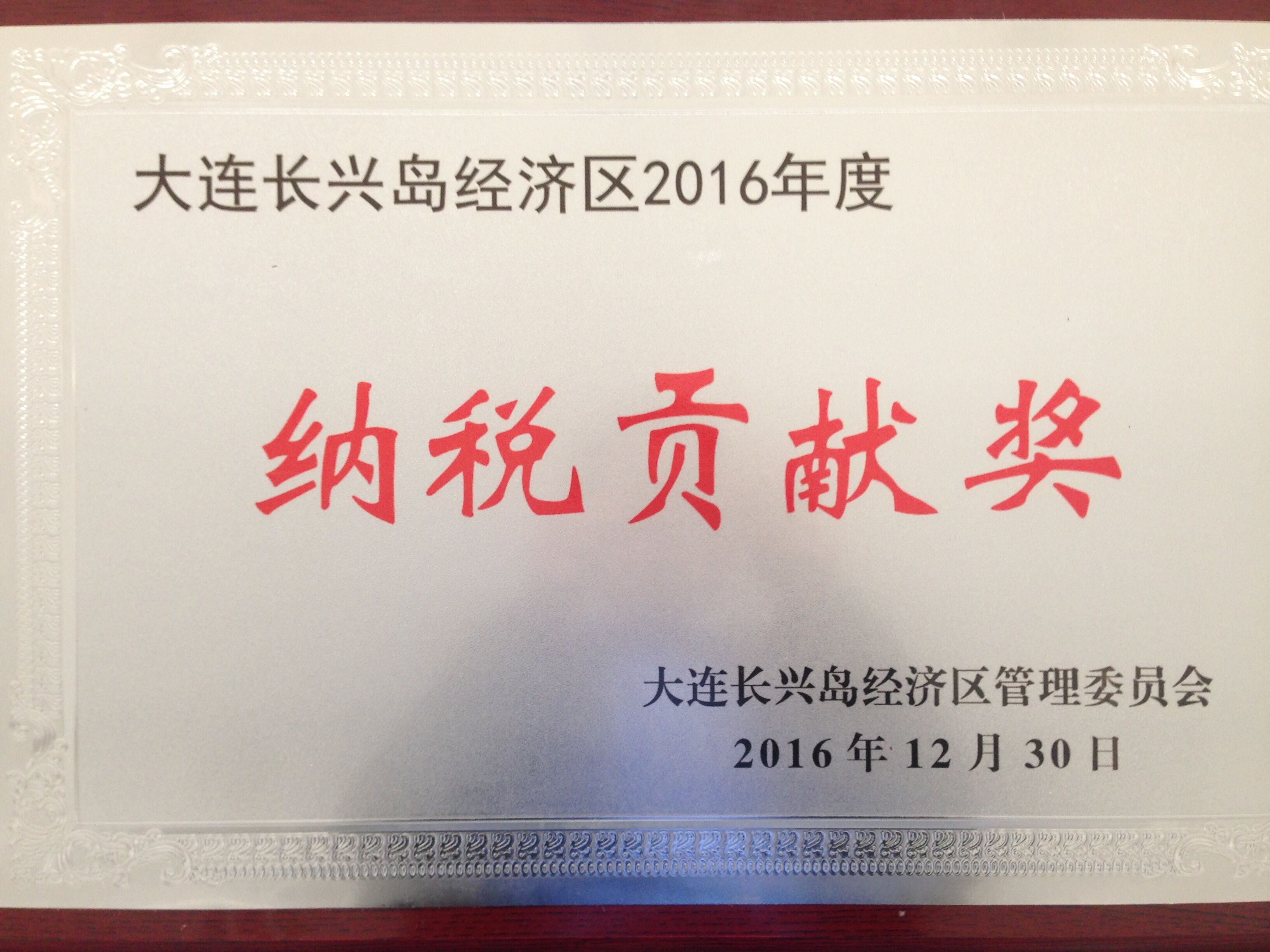 大连91探花国产综合在线精品管道有限公司2016年纳税额位列长兴岛经济区前十位,获得长兴岛管委会表彰奖励,荣获“大连长兴…