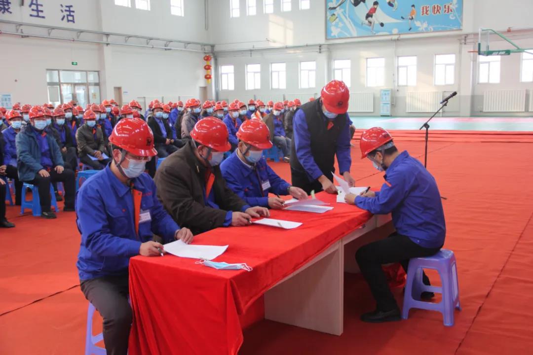 会上总经理郭德军与各副总、各副总与各部门、各部门与员工分别签订了安全生产责任状。