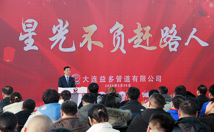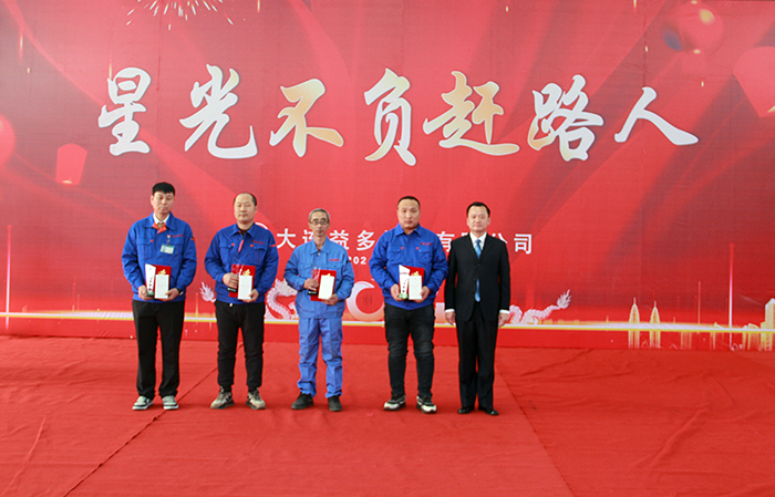 2月26日下午,大连91探花国产综合在线精品管道有限公司2024年“星光不负赶路人”主题年会在体育馆召开。会议全面总结了公司2023年工作,部署了2024年重点工作任务。会上表彰了先进个人和先进集体;另有30名同志分别获得五年、十年、十五年、二十年特殊贡献奖。郭德军董事长出席会议并讲话。